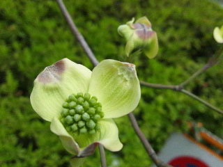 アメリカハナミズキ、白くてひらひらっとしていて、先がほんのりピンクになっていて、大好きな花の一つ、だったのですが、じつはそこは花じゃなかったんですね! びっくりしました。