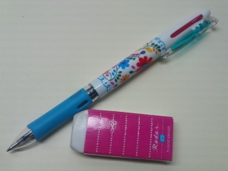 ゲルインクのボールペンが出てからは油性ボールペンはあまり使わないのですが、デザインがあまりにツボだったので思わず購入、315円也。クリップのところが透明なのも可愛い。