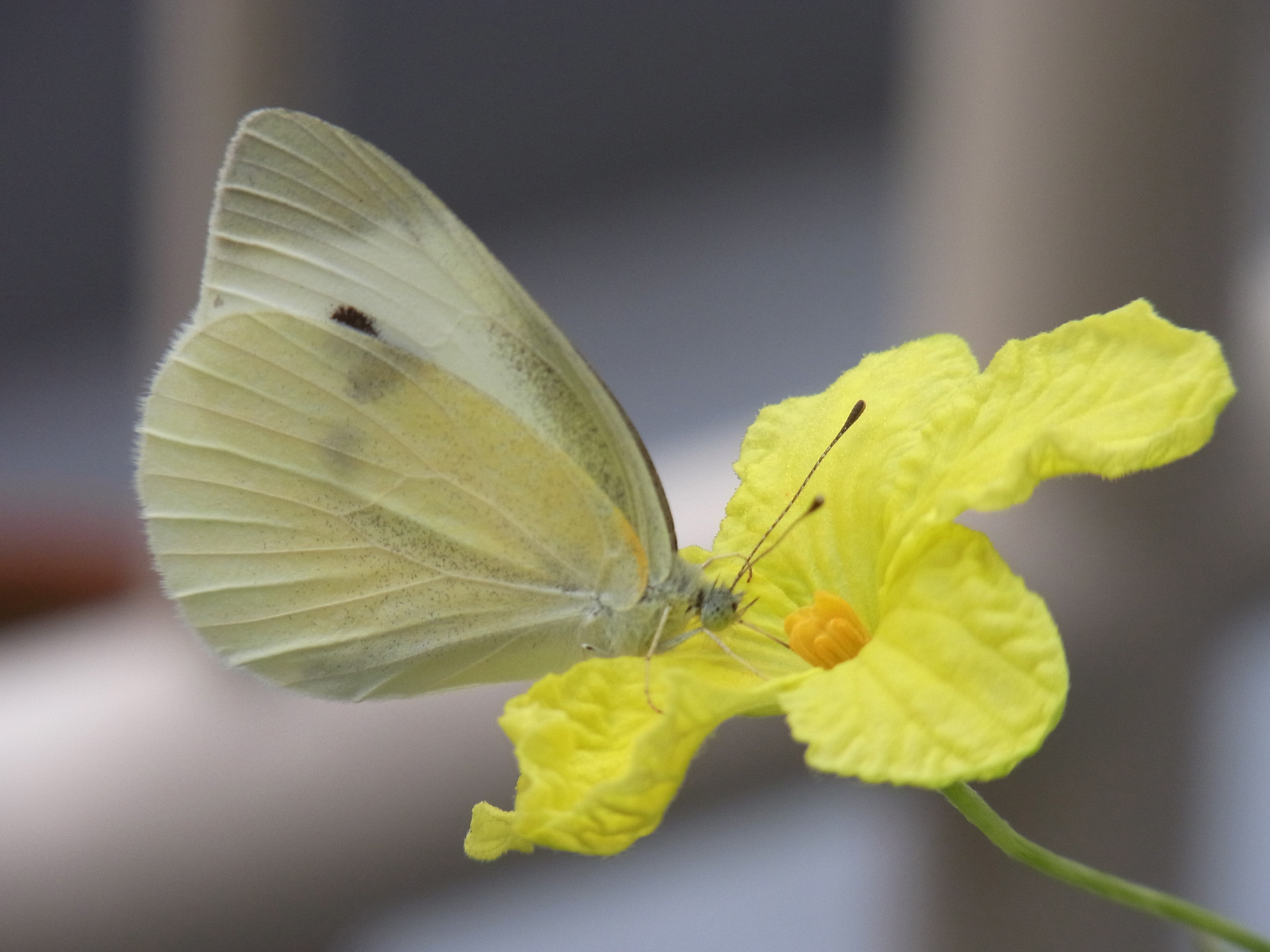 今年もあと4か月ですね...! この夏は初めてゴーヤを育てました。蝶が来たりして楽しめました。↓モンシロチョウの写真です。7月5日に撮りました。