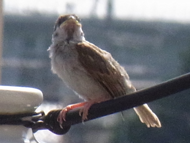 ずっと「チュン!...チュン!...チュン!...チュン!...」と鳴き声がしているので見てみたら、電線の上にとまっていました。