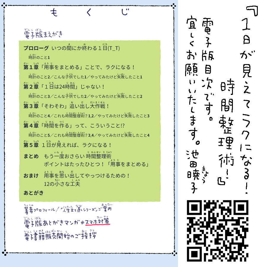 この機会に総ルビ(全部ふりがな付き)にして、電子版あとがきマンガ(スマホのだらだら見対策入り)も付けました。目次画像添付します。