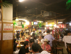 屋台村の一種で、お酒を飲む人で昼間っからガヤガヤ賑わっています。
