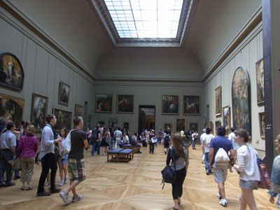 この部屋の一番奥の小さいのが「モナ・リザ」で、ガラスの中に入っています。