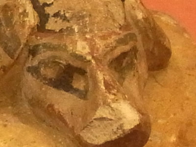 どこの国のいつ頃の作品かとか全然メモしてないんですけど古いことはたしかです。首に紐もついているし飼い犬のようです。顔が人だし、当時から友達や家族のような感覚で飼っていたのかな?と思いました。