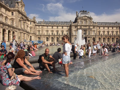 でも現地の人には暑いみたいで、噴水の水に足をつけたりしてました。