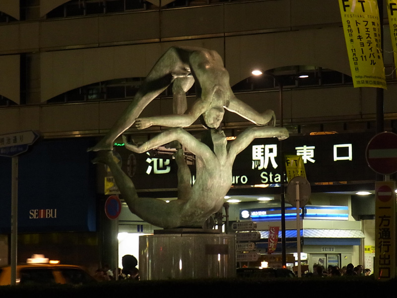 ↓池袋駅東口前の、無理な姿勢の像。