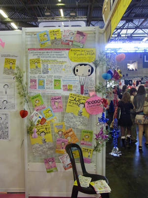 すぐ近くに「テルマエ・ロマエ」の大きなのぼりがありました。後でわかったのですが、日本のマンガを売っているフランスの出版社のブースでした。