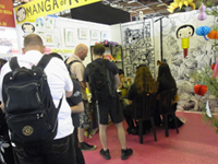 右側は、いつも着色でお世話になっている「コピック」さんのブース、左奥に見えているのは向こうでも大人気の「NARUTO」の人形です。