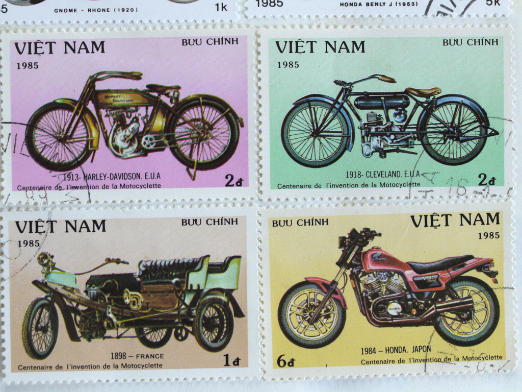 私が持っているバイクの切手は今10枚で、ラオスのが6枚、ベトナムのが4枚です。いずれも1985年発行。