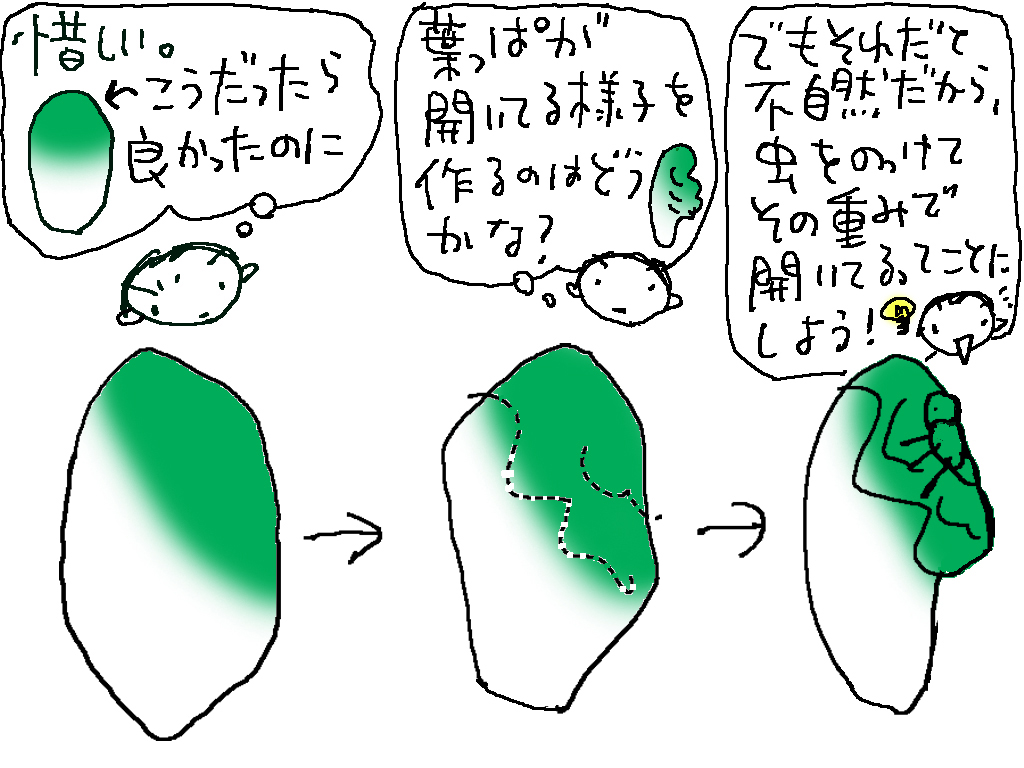 乱暴な説ですが…考えれば考えるほど絶対そうやという気がどんどんしてきました。白菜に対してちょっと大きいような気がしていた虫も、そのためにいると思えば丁度ピッタリなサイズだし。