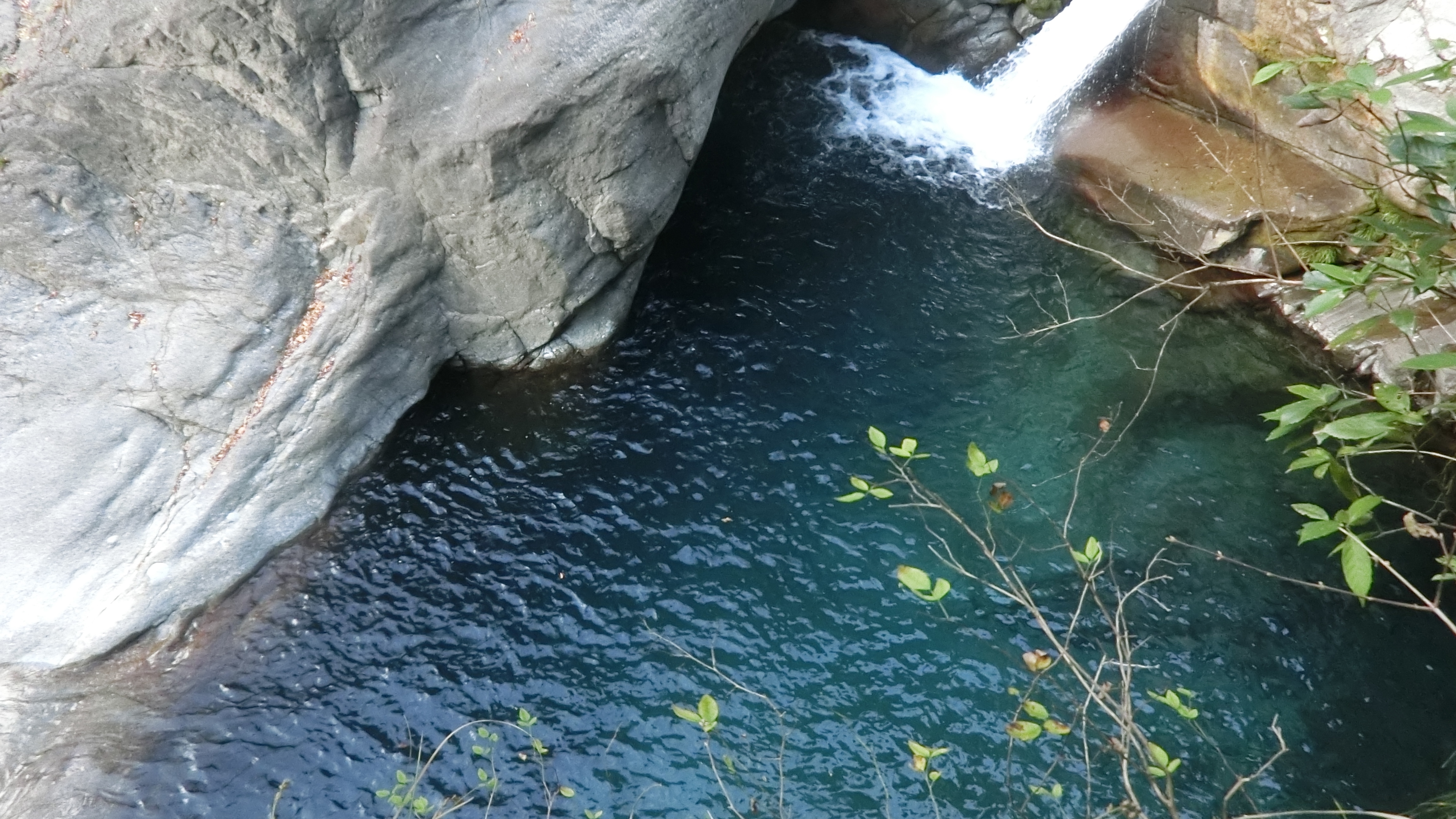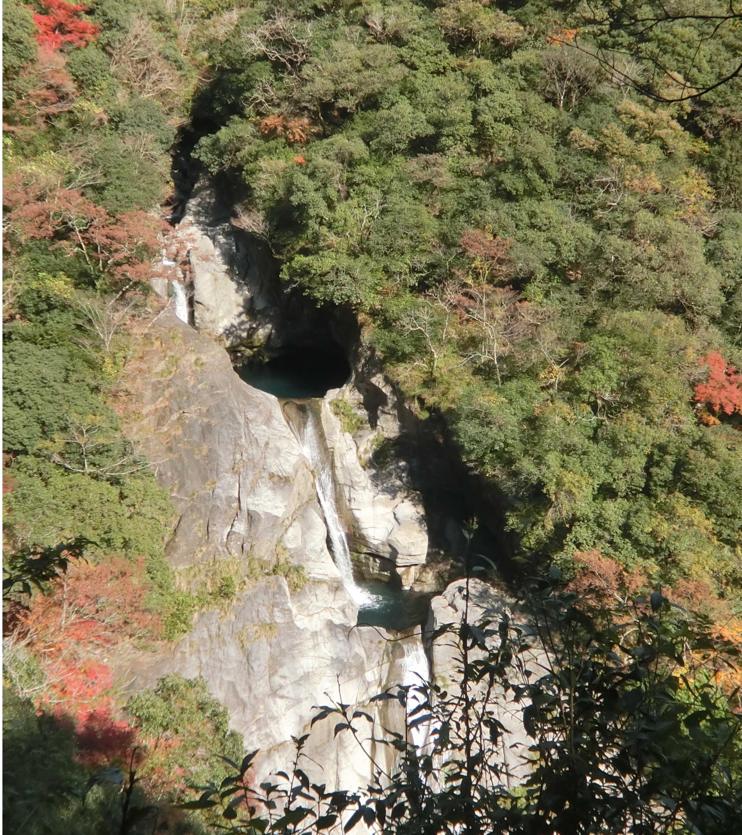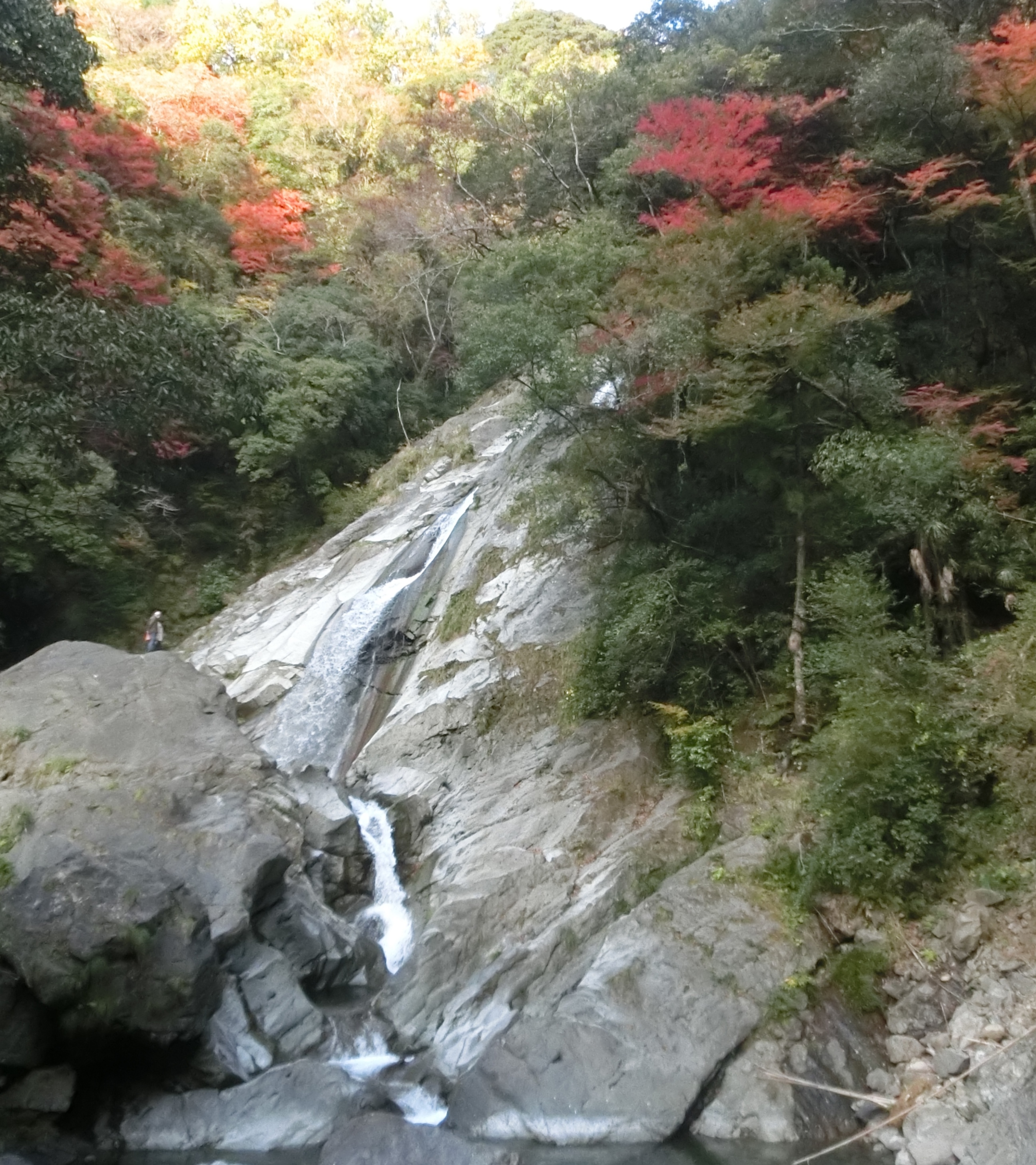 三段になっている、かなり大きな滝です(上の写真の丸い岩の上に見える人影と比較してみてください)。