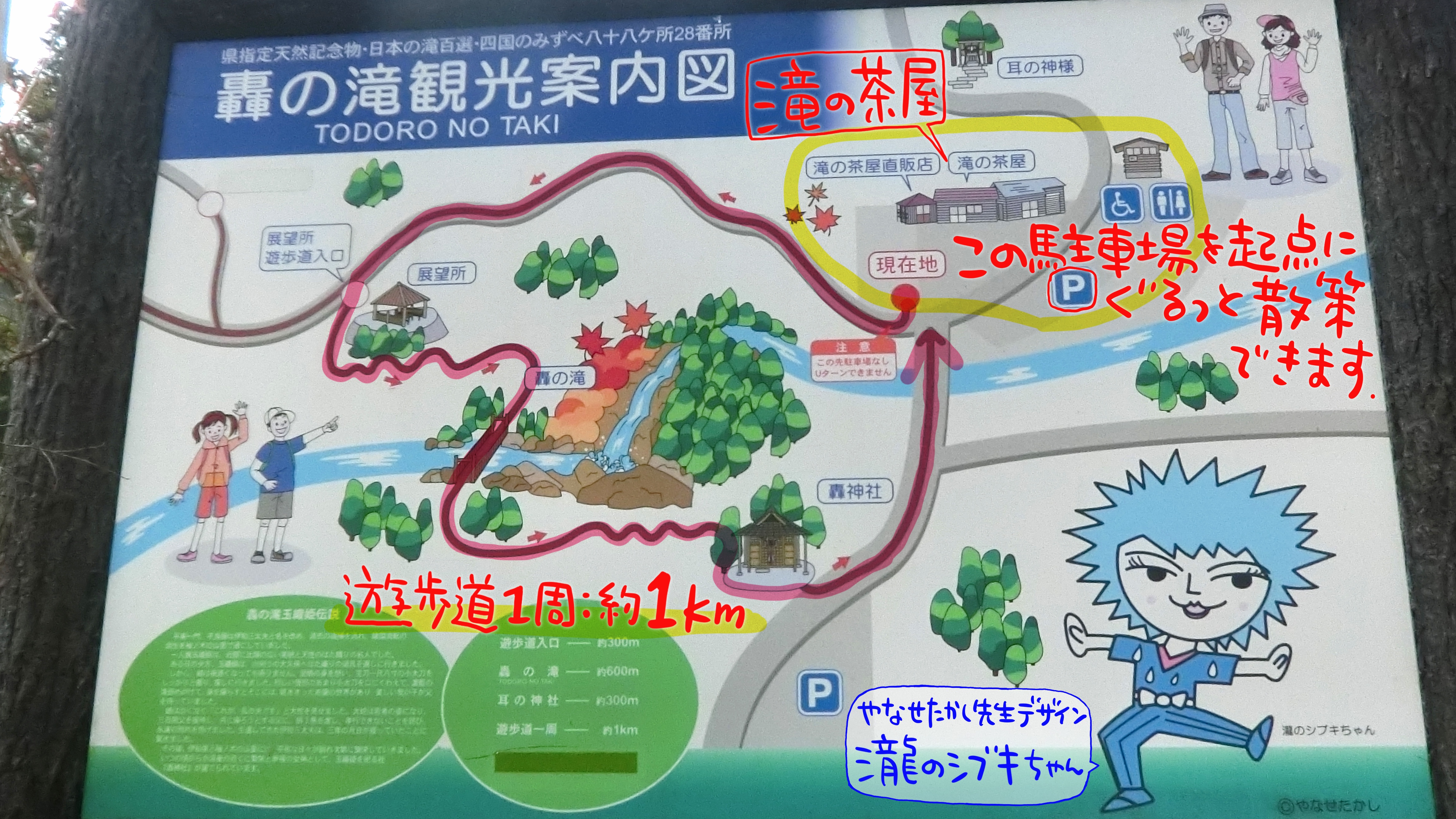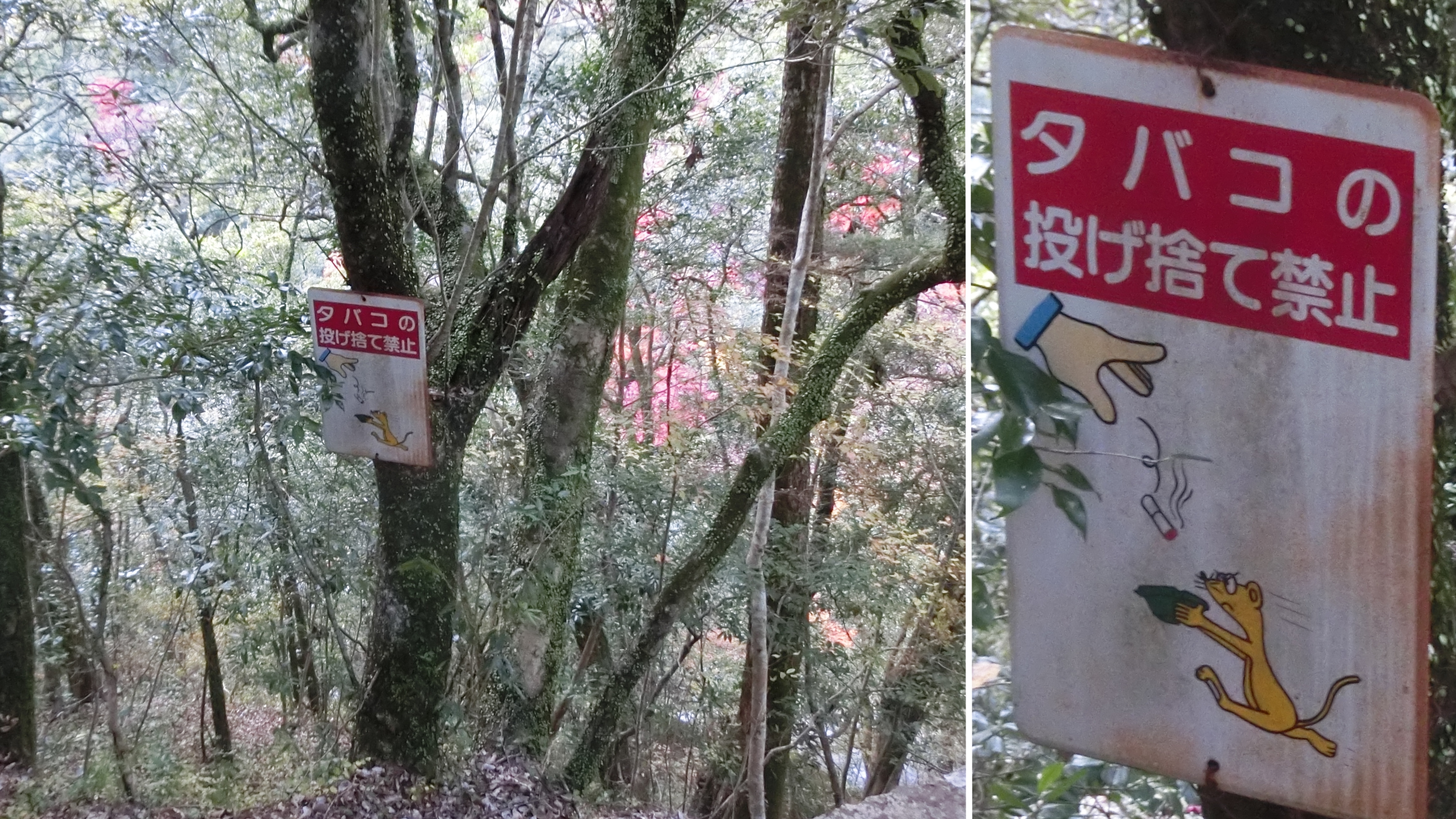 周遊コースに含まれている「轟神社」の近くで見た看板です。一生懸命吸い殻をキャッチする動物(何でしょう?イタチ?)が可愛い(*^^*)
